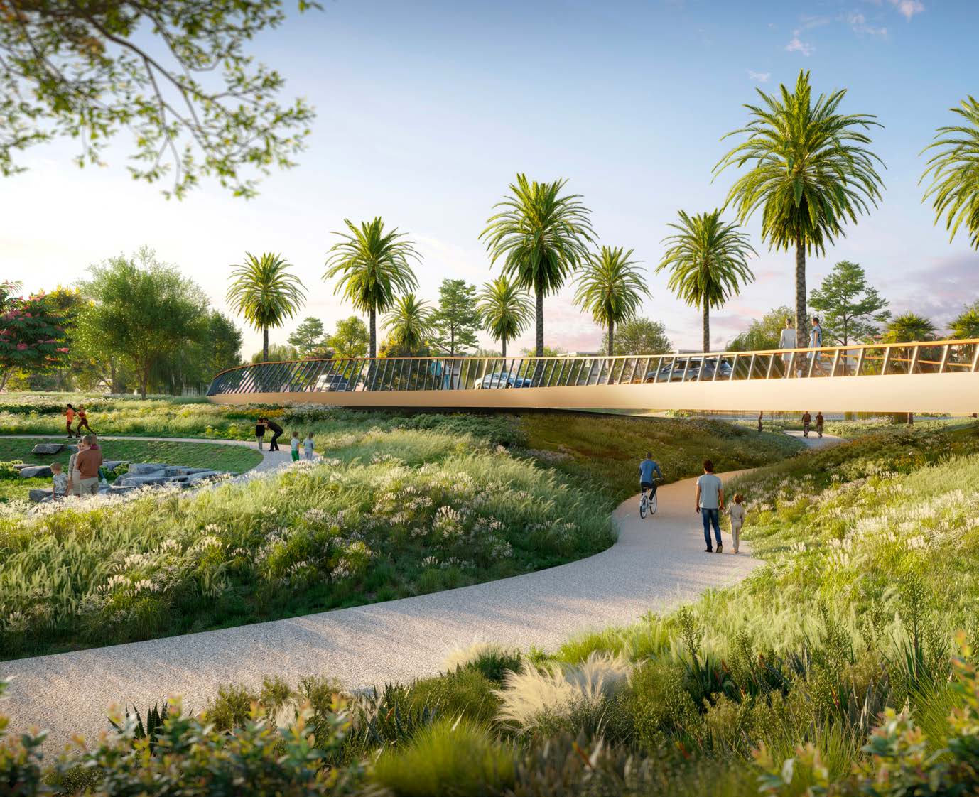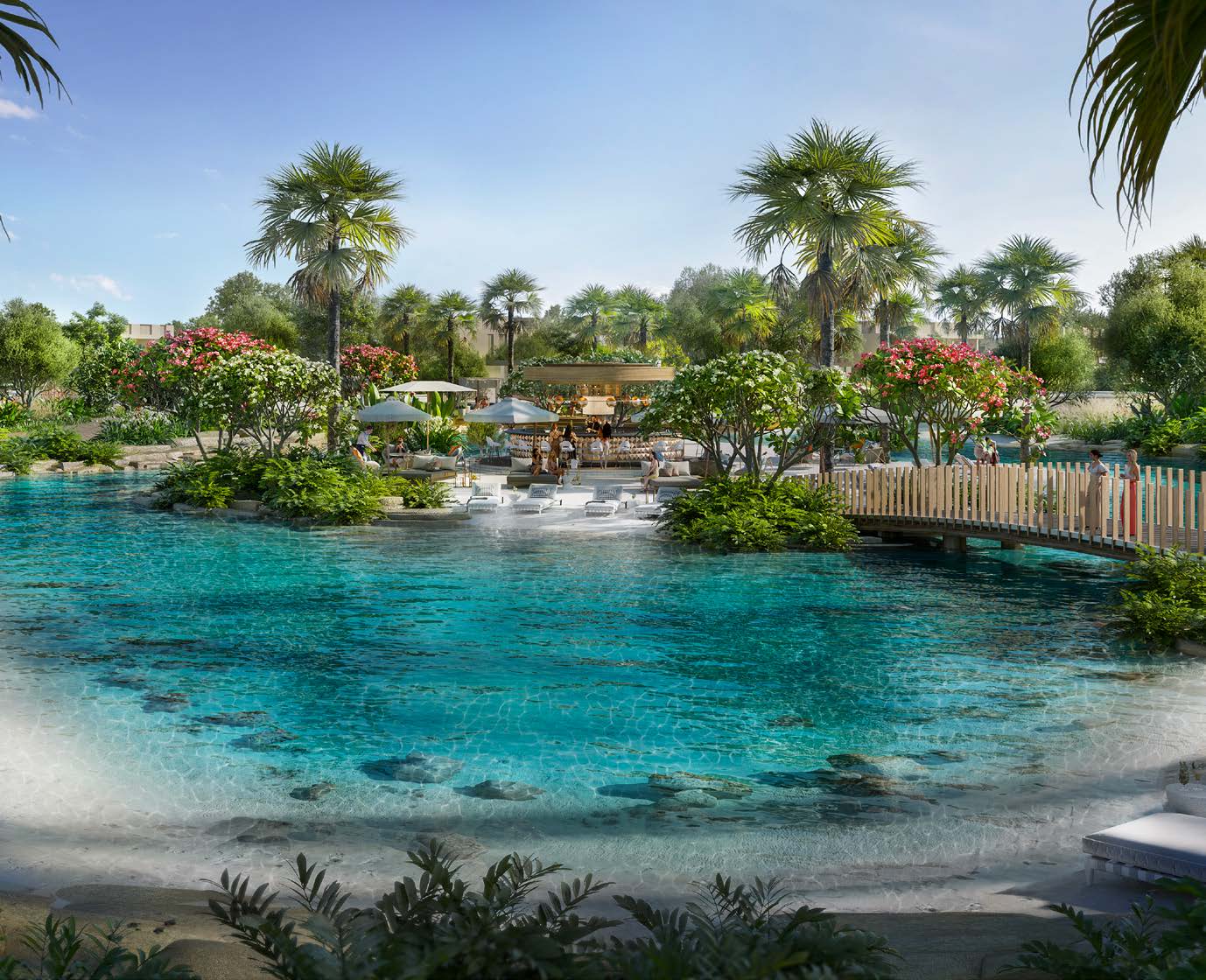 The community is defined by swimmable lagoons and lakes with floating decks; the signature Halo Loop Park, the Edible Garden, featuring culinary herbs and al fresco dining; and the enchanting Lost Garden with land art trails and treehouses.